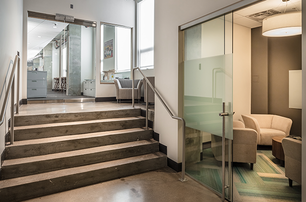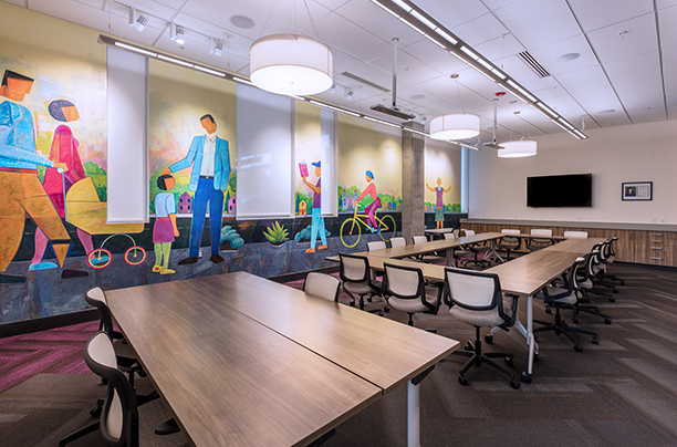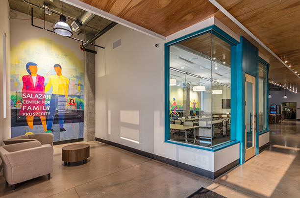 Mi Casa Resource Center needed a larger space to continue offering their much needed services and to house all their employees in a location easily accessible to the community they serve. Taylor Kohrs completed the tenant build-out on the first level of the Terraza del Sol affordable housing mixed-use building. The space includes: 17 perimeter offices, 2 open cubicle work spaces, 3 conference rooms, a 2,700 sq ft multi-purpose room with operable partitions, 2 full kitchen/breakroom areas, 2 public restrooms and family restroom, 2 administration restrooms, 7 private perimeter meeting spaces, 1 computer lab with an operable partitioning wall, 2 zen rooms and all employee areas require badged access.